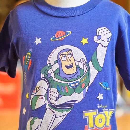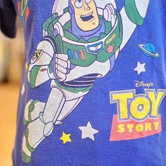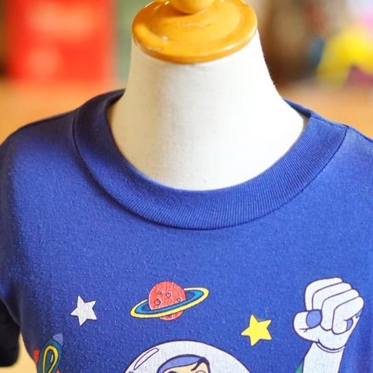 ディズニー・ピクサー映画『トイ・ストーリー』シリーズなどに登場するメインキャラクターの1人バズ・ライトイヤーのヴィンテージキッズTシャツ。