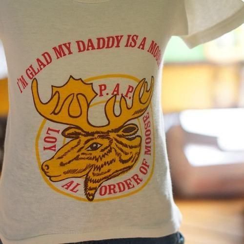 ¥¢¥á¥ê¥«¤é¤·¤¤¥æ¡¼¥â¥¢¤¬¸÷¤ë¥ô¥£¥ó¥Æ¡¼¥¸¥¥Ã¥ºTee¡£GLAD MY DADDY IS A MOOSE¡Ê¤¦¤Á¤Î¥Ñ¥Ñ¤¬¡È¥à¡¼¥¹¡É¤Ç¤è¤«¤Ã¤¿¡ª¡Ë¡×¤È¤¤¤¦¥¥ã¥Ã¥Á¡¼¤Ê¥á¥Ã¥»¡¼¥¸¤¬¥Õ¥í¥ó¥È¤ËÂ礤¯¥×¥ê¥ó¥È¤µ¤ì¤Æ¤¤¤Þ¤¹¡£Ãæ±û¤Ë¤Ï¡¢Â礤ʳѤò»ý¤Ä¥à¡¼¥¹¡Ê¥Ø¥é¥¸¥«¡Ë¤Î¥¤¥é¥¹¥È¤È¡ÖLOYAL ORDER OF MOOSE¡ÊÃéÀ¿¤Ê¤ë¥à¡¼¥¹ÃÄÂΡˡפΥ¨¥ó¥Ö¥ì¥àÉ÷¥í¥´¤¬»Ü¤µ¤ì¡¢Í·¤Ó¿´¤ÎÃæ¤Ë¤â¥«¥ë¥Á¥ã¡¼¤ò´¶¤¸¤ë°ìËç¤Ç¤¹¡£