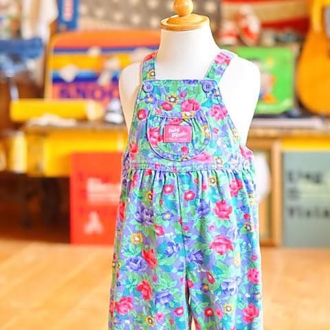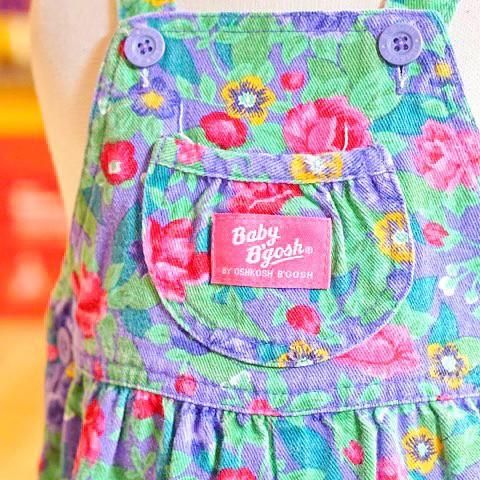1895年にアメリカ、ウィスコンシン州のオシュコシュにて創業、 アメリカワークブランドの老舗、オシュコシュのキッズオーバーオール。花柄、総柄デザインにピンクタグ。可愛すぎな一品です。