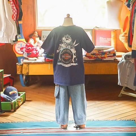 ¤â¤Ï¤ä¥¢¥á¥«¥¸¤Î²¦Æ»¤È¤Ê¤Ã¤¿HARLEY-DAVIDSON¤Î¥¥Ã¥ºTee¡£¥ë¡¼¥Ë¡¼¡¦¥Æ¥å¡¼¥ó¥º¤Î¿Íµ¤¥¥ã¥é¥¯¥¿¡¼¤È¥â¡¼¥¿¡¼¥µ¥¤¥¯¥ë¥Ö¥é¥ó¥É¡Ö¥Ï¡¼¥ì¡¼¥À¥Ó¥Ã¥È¥½¥ó¡×¤Î¥³¥é¥Ü¡£¥Ð¥¤¥¯¤Ë¾è¤Ã¤¿¥Ð¥Ã¥°¥¹¡¦¥Ð¥Ë¡¼¤¬¥¯¡¼¥ë¤ÊÁ°ÌÌ¥×¥ê¥ó¥È¡¢¥Ð¥Ã¥¯¥×¥ê¥ó¥È¤Þ¤ÇÆþ¤Ã¤¿ìÔÂô¤Ê1Ëç¤Ç¤¹¡£
