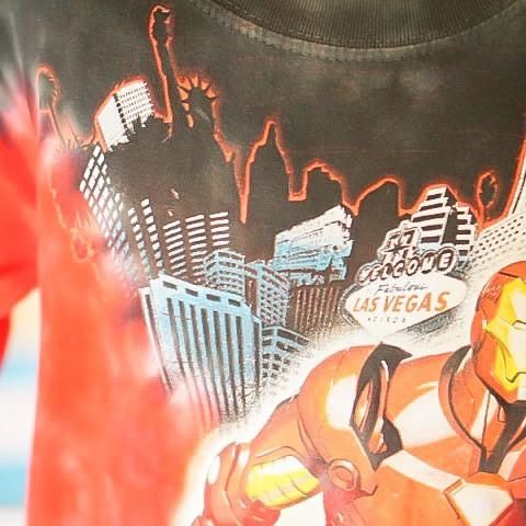 ¥Ò¡¼¥í¡¼¤ÎÃæ¤Ç¤â°µÅÝŪ¤Ê¸ºß´¶¤òÊü¤Ä¡Ö¥¢¥¤¥¢¥ó¥Þ¥ó¡×¤¬¥Õ¥í¥ó¥È¤ËÂçÃÀ¤ËÉÁ¤«¤ì¤¿¡¢MARVEL¸ø¼°¤Î¥¥Ã¥ºT¥·¥ã¥Ä¡£ÇطʤˤϹâÁإӥ뤬Ω¤ÁʤÖÅÔ²ñ¤ÎÉ÷·Ê¤¬ÉÁ¤«¤ì¤Æ¤ª¤ê¡¢²Ð²Ö¤ò»¶¤é¤·¤Ê¤¬¤é¤½¤Î¶õ¤ò¶î¤±È´¤±¤ë¤è¤¦¤ÊÇ÷ÎϤ¢¤ë¹½¿Þ¤¬Ì¥ÎϤǤ¹¡£