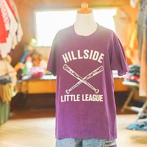 フロントにはHILLSIDE LITTLE LEAGUE。 パープルボディの色味も良く条件の良いOLDキッズTee。
