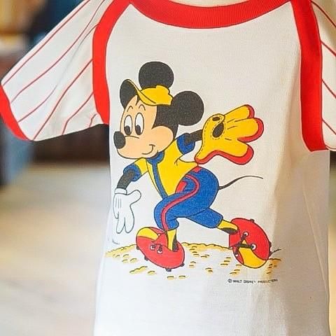 OLDミッキーのベースボールTシャツUSA製。嬉しい両面プリントです。