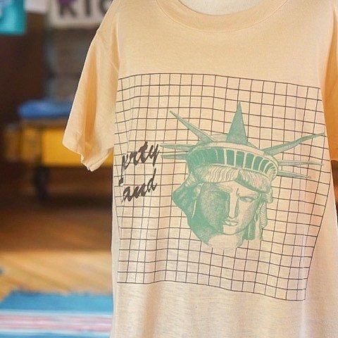 ¼«Í³¤Î½÷¿À¤Î´é¤ò¥»¥ó¥¿¡¼¤ËÇÛ¤·¤¿¥¢¡¼¥È¥°¥é¥Õ¥£¥Ã¥¯¥¥Ã¥ºT¥·¥ã¥Ä¡£ÇطʤΥ°¥ê¥Ã¥É¥Ñ¥¿¡¼¥ó¤È¡¢¼ê½ñ¤É÷¥Õ¥©¥ó¥È¤Î¡Èparty and¡É¤¬¤É¤³¤«¥¢¥ó¥Ë¥å¥¤¤Ç¡¢80¡Á90ǯÂå¤Î¥°¥é¥Õ¥£¥Ã¥¯¥Ç¥¶¥¤¥ó¤ò×Ç×ʤȤµ¤»¤Þ¤¹¡£