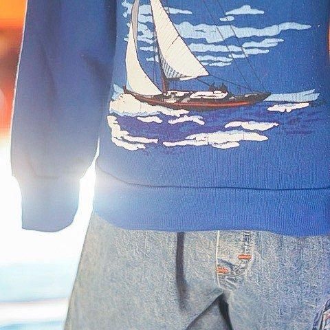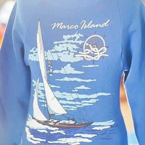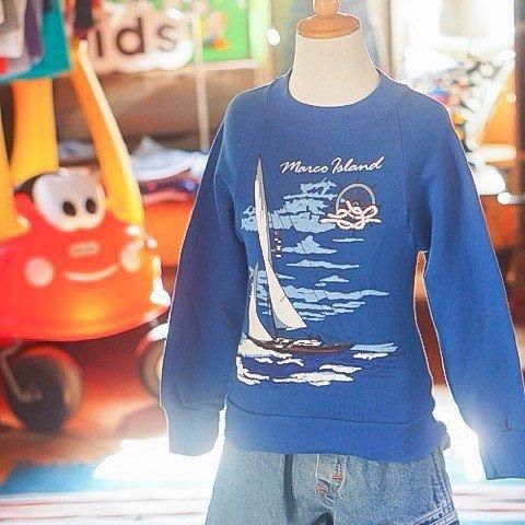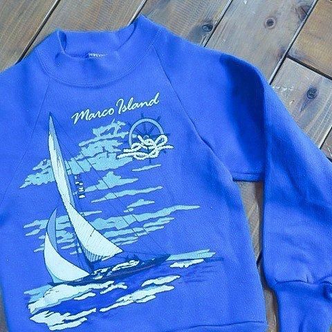 雰囲気あるヨット柄の80s〜90sヴィンテージキッズスウェットUSA製。