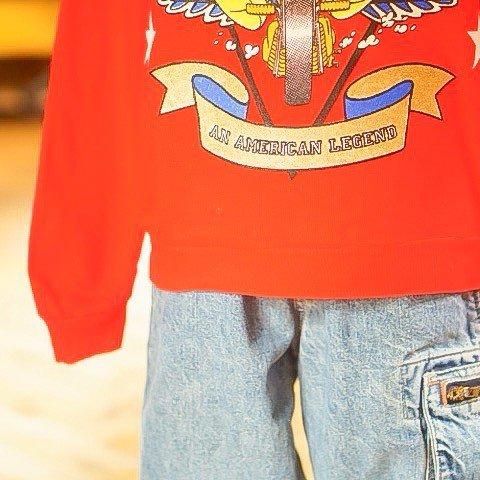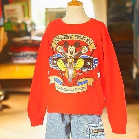 Á¯¤ä¤«¤Ê¥ì¥Ã¥É¥Ü¥Ç¥£¤Ë¡¢ÂçÃÀ¤Ê¥é¥¤¥À¡¼¥¹¥¿¥¤¥ë¤Î¥ß¥Ã¥¡¼¥Þ¥¦¥¹¤òÇÛ¤·¤¿¥ô¥£¥ó¥Æ¡¼¥¸¡¦¥Ç¥£¥º¥Ë¡¼¥¹¥¦¥§¥Ã¥È¡£¥Õ¥í¥ó¥È¤Ë¤Ï¥Ï¡¼¥ì¡¼¥À¥Ó¥Ã¥É¥½¥ó¤ò×Ç×ʤȤµ¤»¤ë¥Ð¥¤¥¯¤Ë¸Ù¤ë¥ß¥Ã¥¡¼¤¬ÉÁ¤«¤ì¡¢Çظå¤Ë¤ÏÀ±¤ÈÍã¤ò¤¢¤·¤é¤Ã¤¿¥¢¥á¥ê¥«¥ó¥â¥Á¡¼¥Õ¤¬¹¤¬¤ê¤Þ¤¹¡£¥È¥Ã¥×¤Ë¤Ï¡ÖMICKEY MOUSE¡×¡¢¿þ¤Ë¤Ï¡ÖAN AMERICAN LEGEND¡×¤Î¥¹¥í¡¼¥¬¥ó¤¬·Ç¤²¤é¤ì¡¢¥¢¥á¥ê¥«¥ó¥«¥ë¥Á¥ã¡¼¤ò¾Ýħ¤¹¤ë¥Ç¥¶¥¤¥ó¤Ë»Å¾å¤¬¤Ã¤Æ¤¤¤Þ¤¹¡£