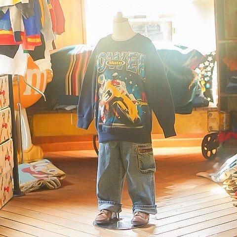 人気のモーター系キッズスウェット。フロントに大きくプリントされた迫力ある逸品。