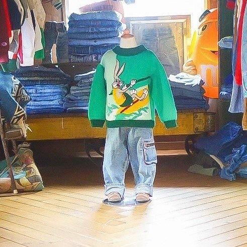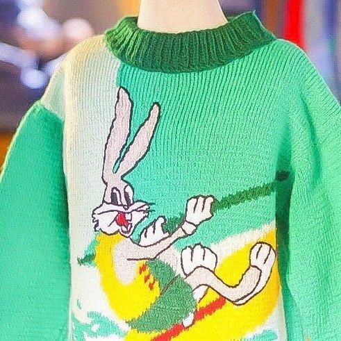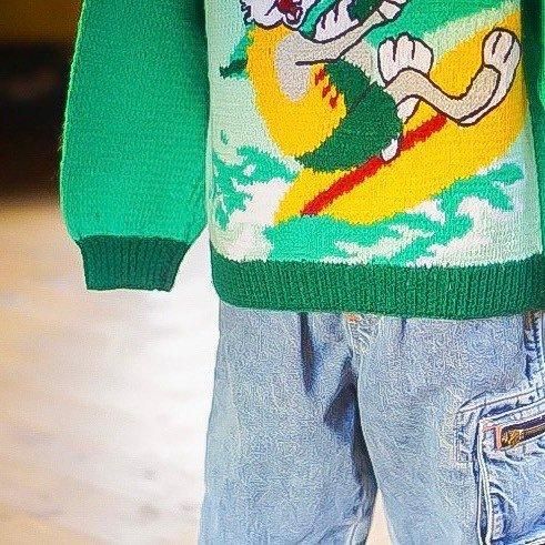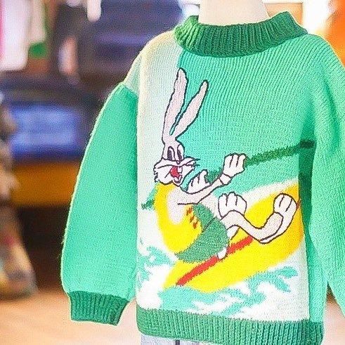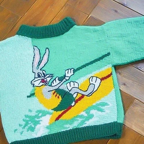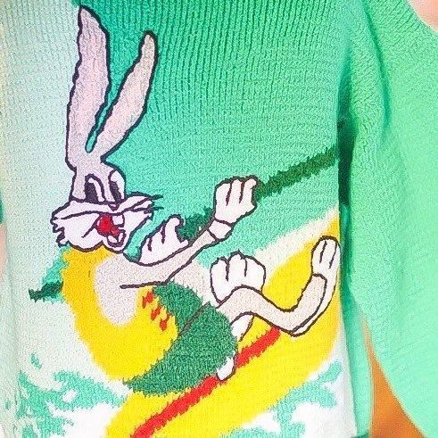 Á¯¤ä¤«¤Ê¥°¥ê¡¼¥ó¤Î¥Ü¥Ç¥£¤Ë¡¢Looney Tunes ¤òÂåɽ¤¹¤ë¥¥ã¥é¥¯¥¿¡¼¡ÖBugs Bunny¡Ê¥Ð¥Ã¥°¥¹¡¦¥Ð¥Ë¡¼¡Ë¡×¤¬¥µ¡¼¥Õ¥£¥ó¤ò³Ú¤·¤à¥°¥é¥Õ¥£¥Ã¥¯¤òÂçÃÀ¤ËÊԤ߹þ¤ó¤À¥ô¥£¥ó¥Æ¡¼¥¸¥¥Ã¥º¥Ë¥Ã¥È¡£