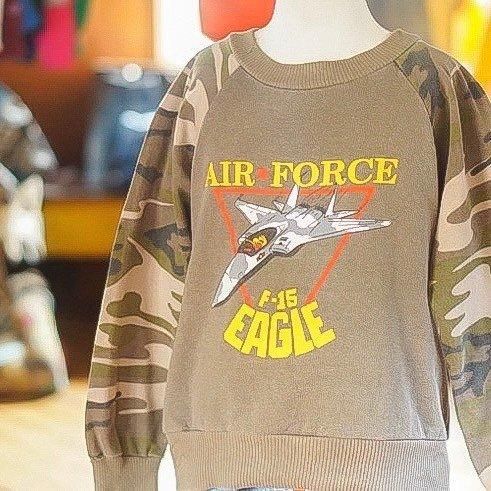 アメリカ空軍を象徴する戦闘機 “F-15 イーグル” を大胆にプリントした、ヴィンテージキッズスウェット。