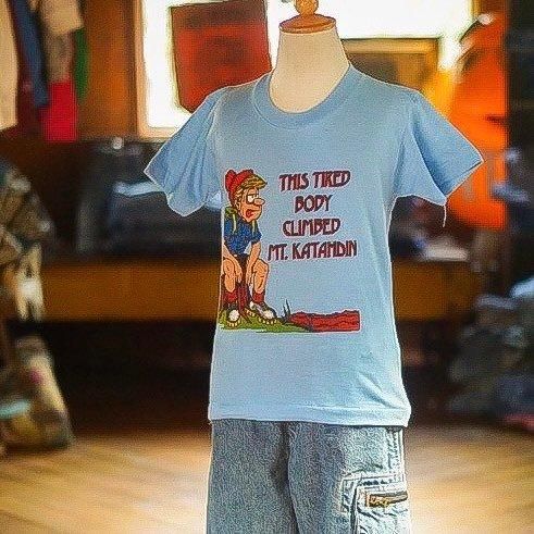 カタディン山はアメリカ・メイン州にあるアパラチアン・トレイルの終点にして、東海岸屈指の人気登山スポット。そんな山の頂上で販売されていたと思われるローカルスーベニアTシャツです。