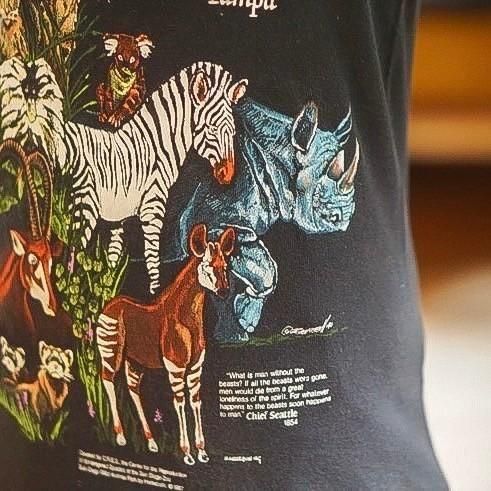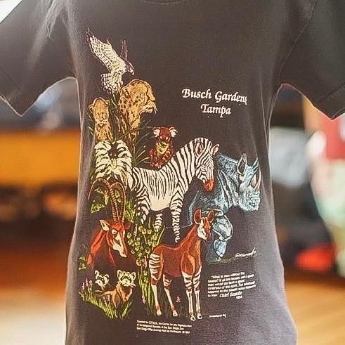 アメリカフロリダ州タンパのテーマパーク『Busch Gardens』のスーベニアTee。人気のアニマル柄デザインです。