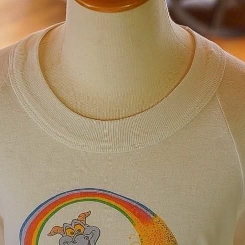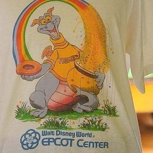 Walt Disney WorldのEPCOT Centerを象徴する人気キャラクター「フィグメント(Figment)」がプリントされた、ファン必見の1枚。カラフルな虹と星のグラフィックと「FIGMENT」ロゴ入りのユニフォームを着たフィグメントのOLDキッズTee。