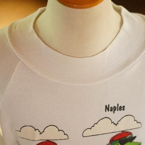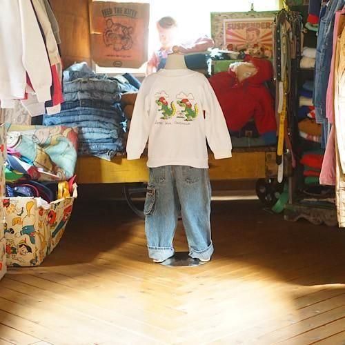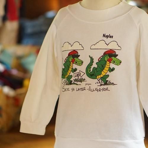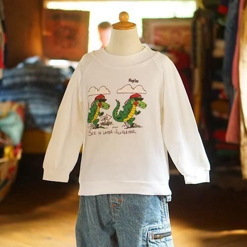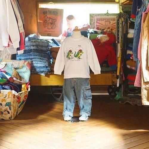 ホワイトボディに両面プリントを施したユニークなヴィンテージキッズスウェット。