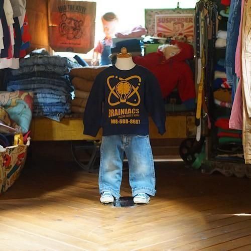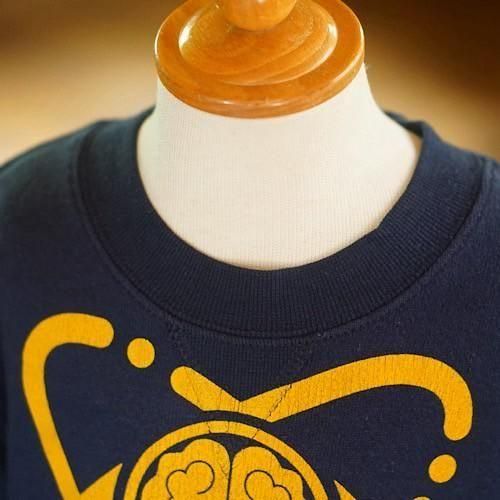 ネイビーのボディにマスタードイエローのプリントが映えるキッズヴィンテージスウェット。フロントには“ブレーン(脳)”をかたどった電球と、くるっと回る原子のラインを組み合わせたユニークなグラフィックが描かれています。電球は「ひらめき」、ブレーンは「知性」、原子は「探究心」を象徴し、学びの楽しさを表現。