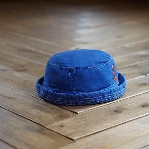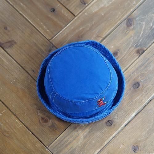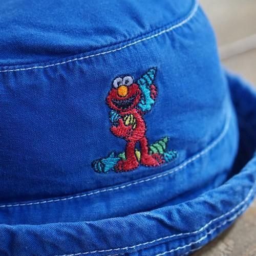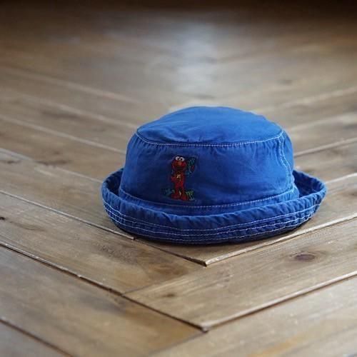 鮮やかなロイヤルブルーのコットンハットに、セサミストリートの人気キャラクター「エルモ」を刺繍であしらったヴィンテージベビー用バケットハット。