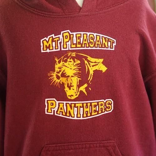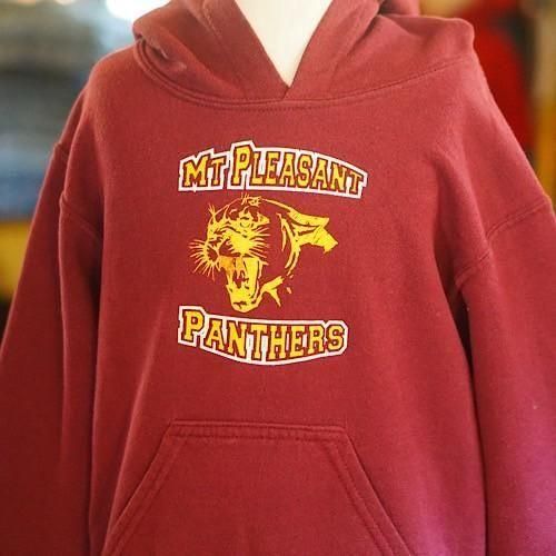 ¿¼¤ß¤Î¤¢¤ë¥Ð¡¼¥¬¥ó¥Ç¥£¥Ü¥Ç¥£¤Ë¡¢¥¤¥¨¥í¡¼¤È¥Û¥ï¥¤¥È¤ÇÉÁ¤«¤ì¤¿¥Ñ¥ó¥µ¡¼¡ÊÉ¿¡Ë¤Î¥°¥é¥Õ¥£¥Ã¥¯¤È¡ÖMT. PLEASANT PANTHERS¡×¤Î¥Á¡¼¥à¥í¥´¤ò¥×¥ê¥ó¥È¤·¤¿¥¥Ã¥º¥Ñ¡¼¥«¡¼¡£