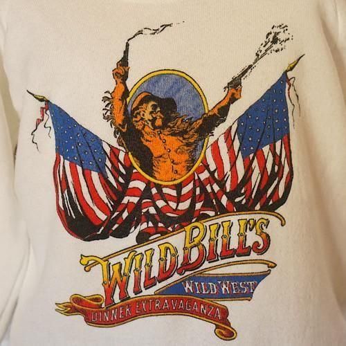 WILD BILL¡ÇS WILD WEST DINNER EXTRAVAGANZA¡É¤ÎÇ÷ÎϤ¢¤ëÂçȽ¥×¥ê¥ó¥È¡£19À¤µª¥¢¥á¥ê¥«À¾Éô¤Ç̾¤òÃÚ¤»¤¿ÅÁÀâŪ¥¬¥ó¥Þ¥ó ¥ï¥¤¥ë¥É¡¦¥Ó¥ë¡¦¥Ò¥³¥Ã¥¯¤¬¡¢Î¾¼ê¤Ë·ý½Æ¤ò·Ç¤²¤¿»Ñ¤òÉÁ¤¡¢¤½¤ÎÇØ¸å¤Ë¤ÏÂ礤¯¹¤¬¤ëÀ±¾ò´ú¤òÇÛÃÖ¡£À¾Éô³«Âó»þÂå¤Î¾ÝħŪ¤Ê¥¤¥á¡¼¥¸¤òÁ¯¤ä¤«¤Ëɽ¸½¤·¤Æ¤¤¤Þ¤¹¡£