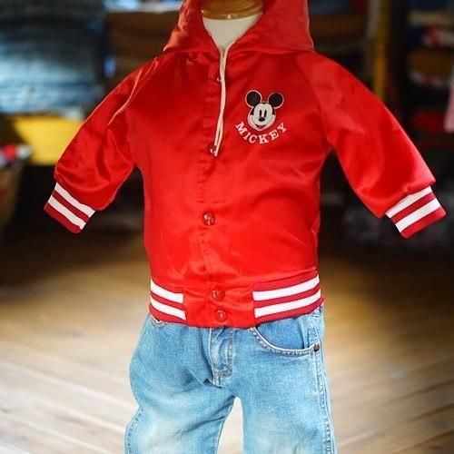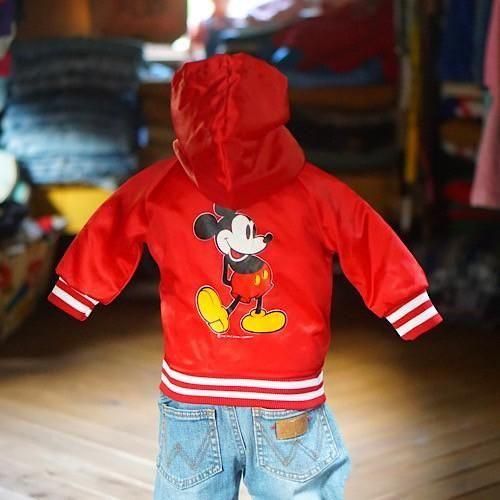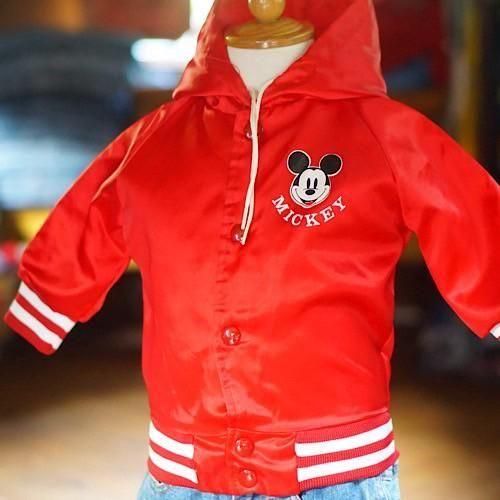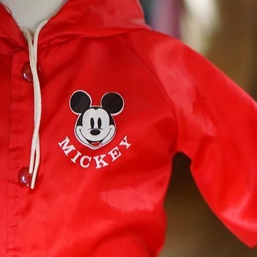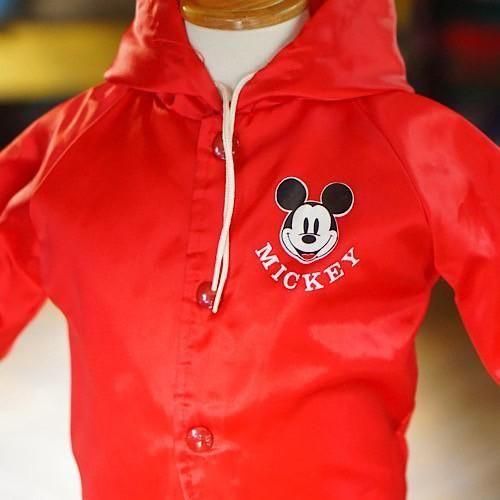 軽量で光沢感のあるナイロン素材は、当時のスポーツ&キャラクターアウターを象徴する質感。袖口・裾の2本ライン入りリブとフード付き仕様で春秋のライトアウターとしてはもちろん、ヴィンテージ好きにはたまらない一着です。
