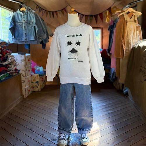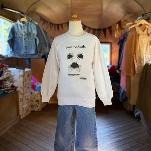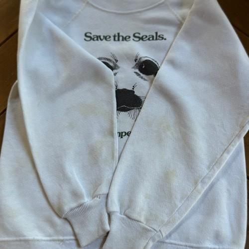 環境保護団体《Greenpeace》による“Save the Seals.”キャンペーンデザインのプリントスウェット。
