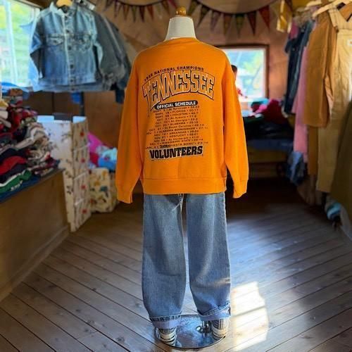 鮮やかなオレンジボディはテネシー大学のスクールカラー。裏起毛のしっかりとしたボディは、当時のカレッジスウェットらしいタフさと着心地を兼ね備えています。