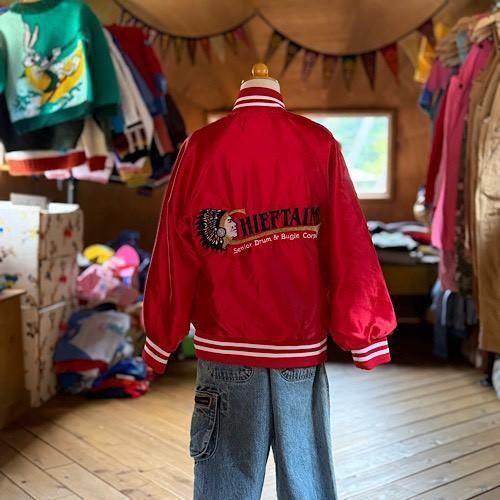 アメリカンユースカルチャーを感じさせる、クラシックなチームジャケットスタイルの好例です。