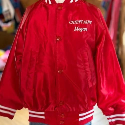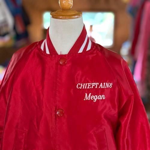 フロント左胸にはネーム刺繍「Megan」とチーム名 “CHIEFTAINS”、