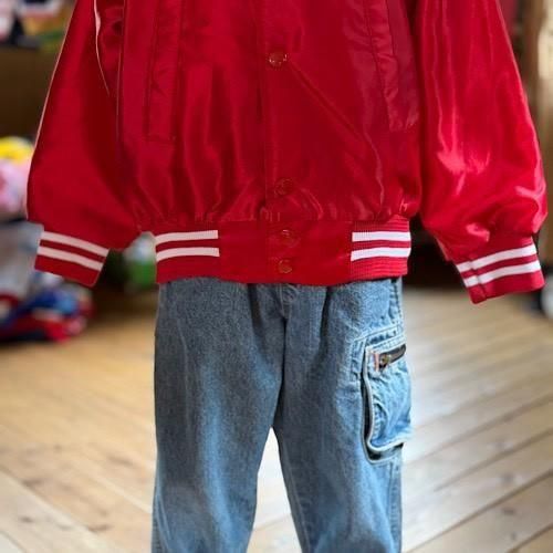 USA製キッズ・ナイロンサテンジャケット。艶のあるサテンナイロンを使用し、軽量ながらも張りのある質感が特徴。