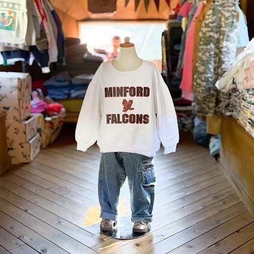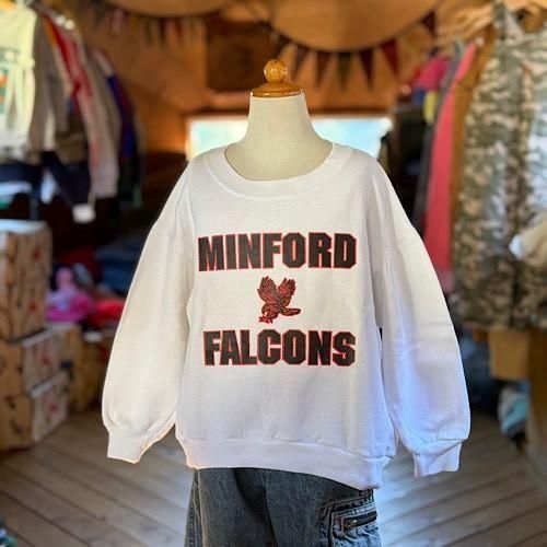アメリカ・オハイオ州の公立校「Minford High School」のスポーツチーム《FALCONS》ロゴがプリントされたヴィンテージスウェット。