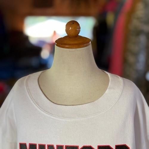 フロント中央に大判で配されたチームロゴと、鷹のマスコットデザインが象徴的で、アメカジの王道であるカレッジ・アスレチックモチーフの魅力が詰まった一枚です。