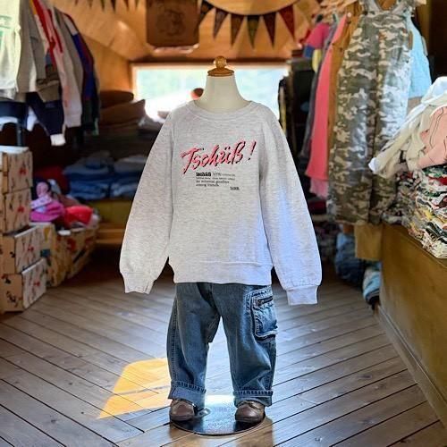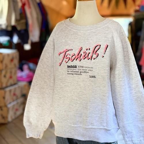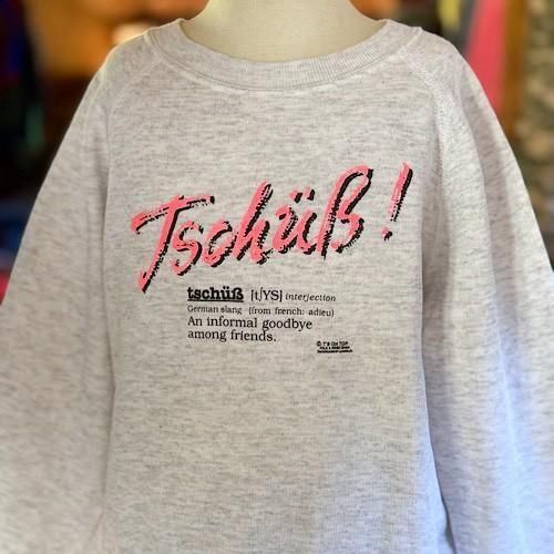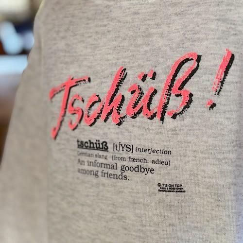 ドイツ語で「じゃあね!」「またね!」の意味を持つスラング《Tschüß!(チュース)》のタイポグラフィがフロントに大きくプリントされたスウェット。