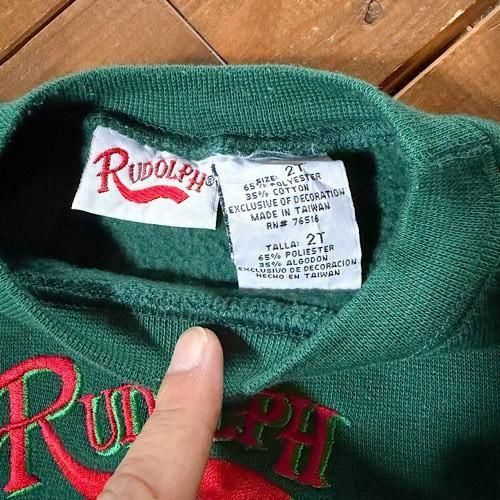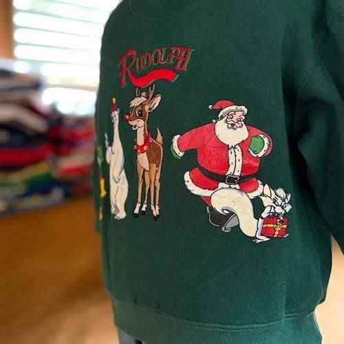 深みのあるフォレストグリーンをボディに、〈RUDOLPH〉のロゴ刺繍をフロント上部に配置し、その下にはルドルフを中心にサンタクロース、スノーベア、エルフなど、物語性のあるキャラクターたちが横一列に並んだアイコニックなデザイン。