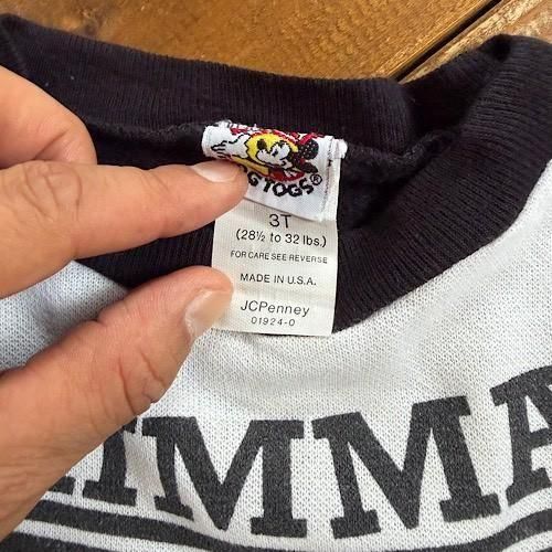 ブラック×ホワイトの切り替えボディにマスタードのロゴが映える、JCPenney製Disneyラインらしいロゴワークが特徴の一枚です。
