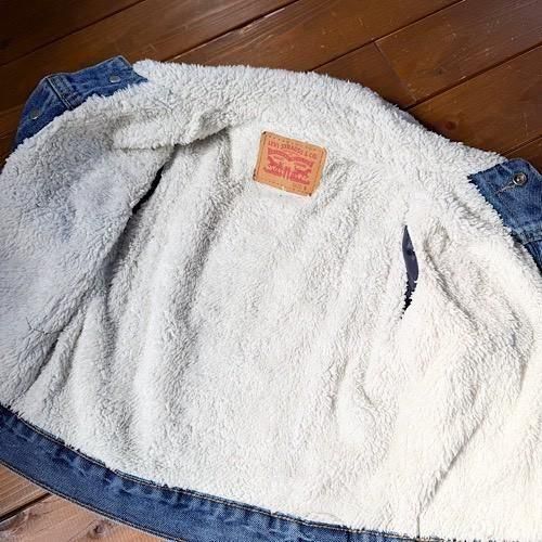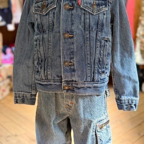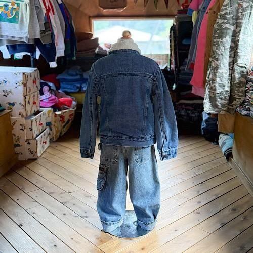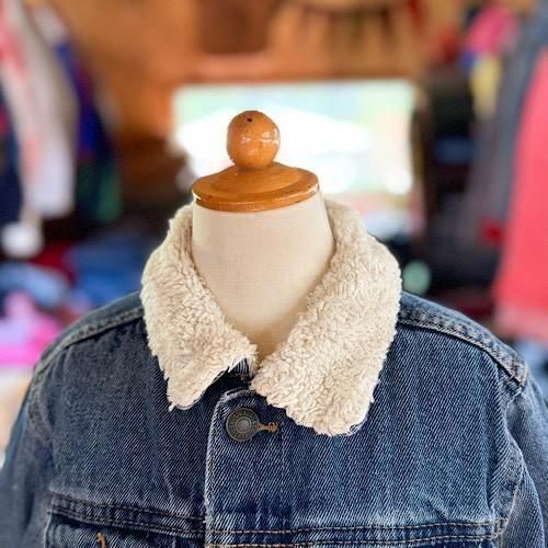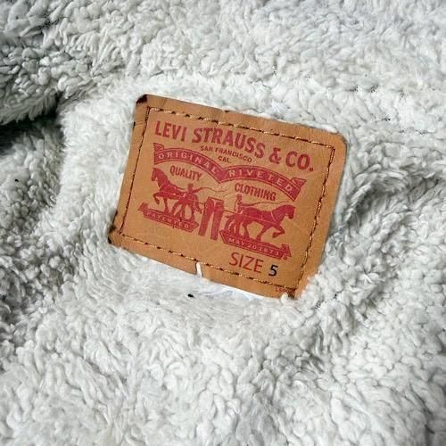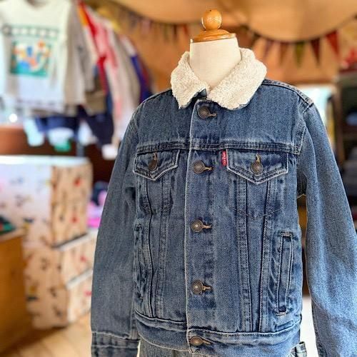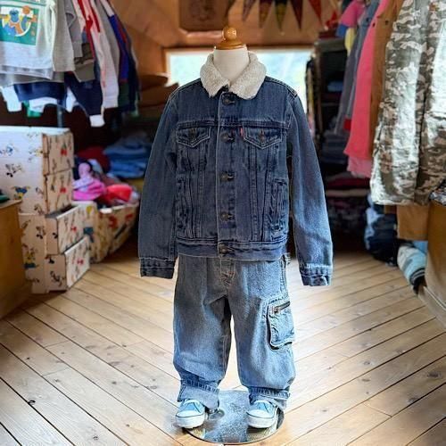 Levi’sのキッズラインとして展開された、しっかりとした厚みのあるコットンデニムを用いたボアジャケット。表地には5ポケットジーンズと同質のデニム生地が使われており、キッズアイテムながらワークウェアの雰囲気をしっかり感じられる本格的な作りです。